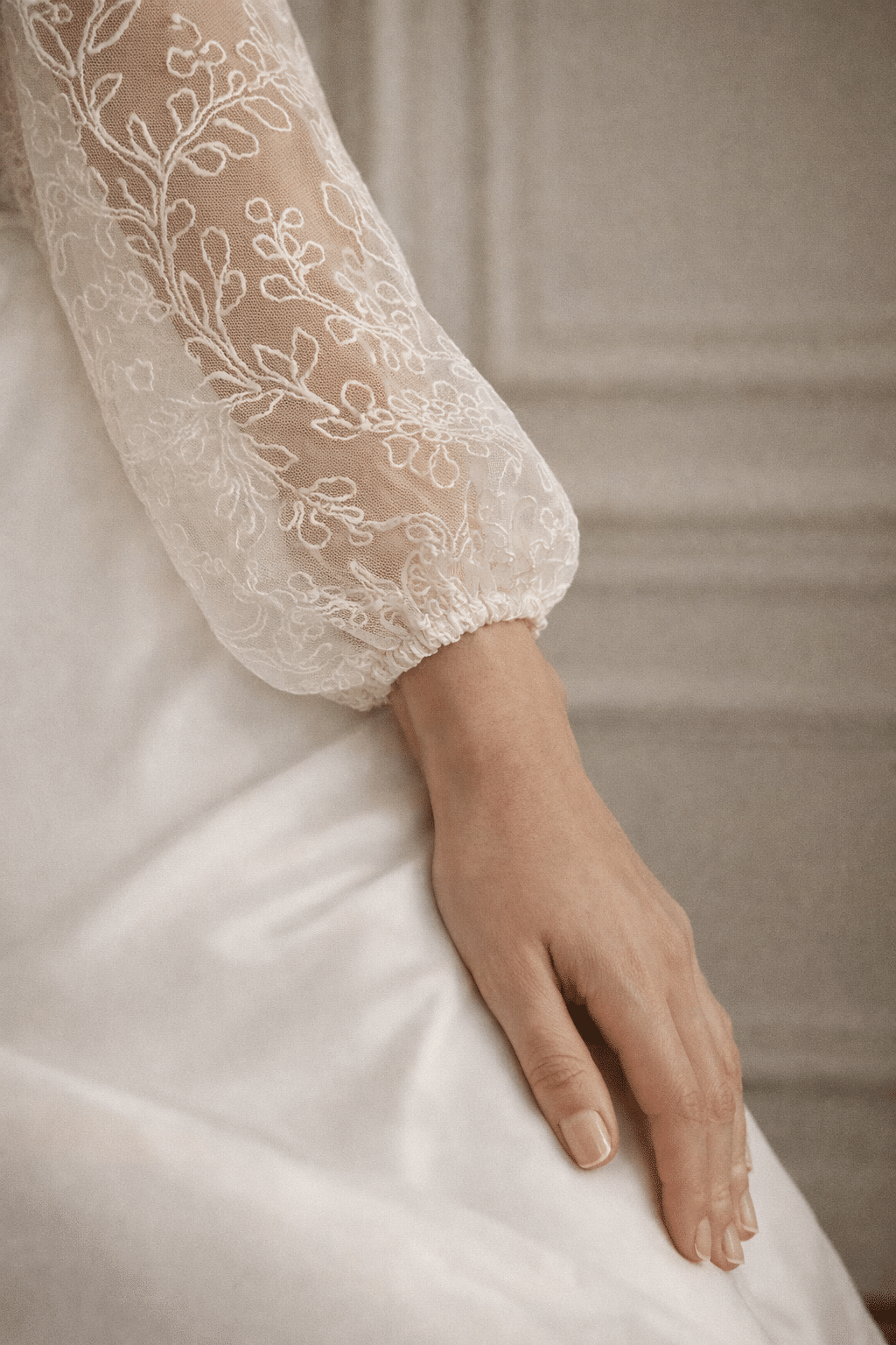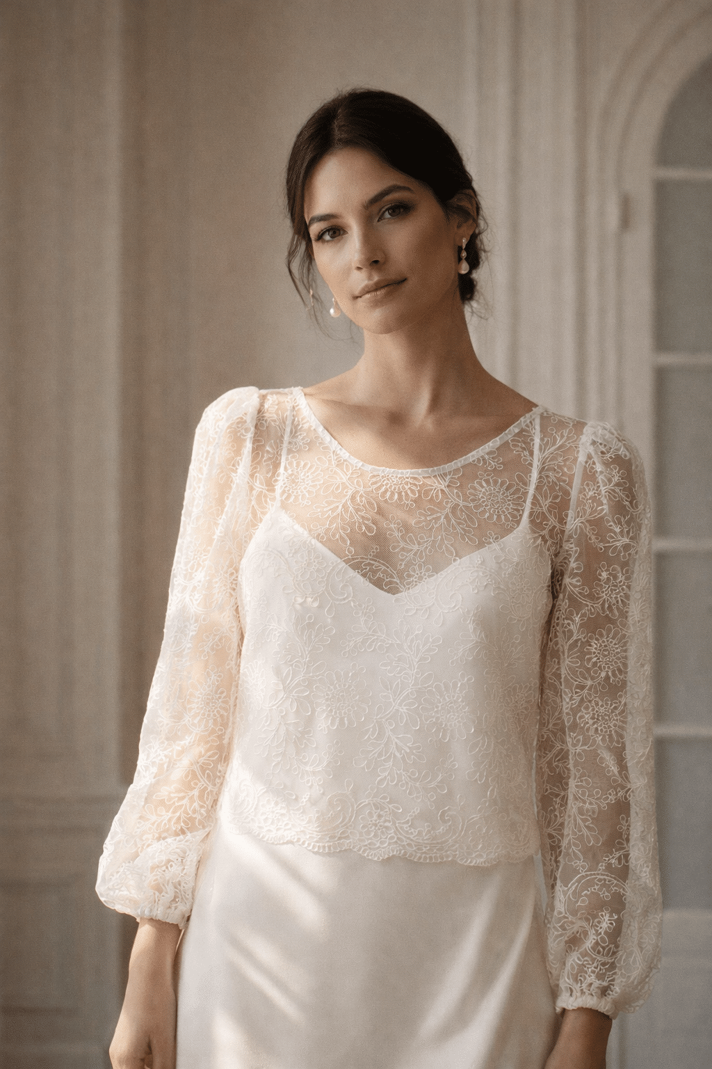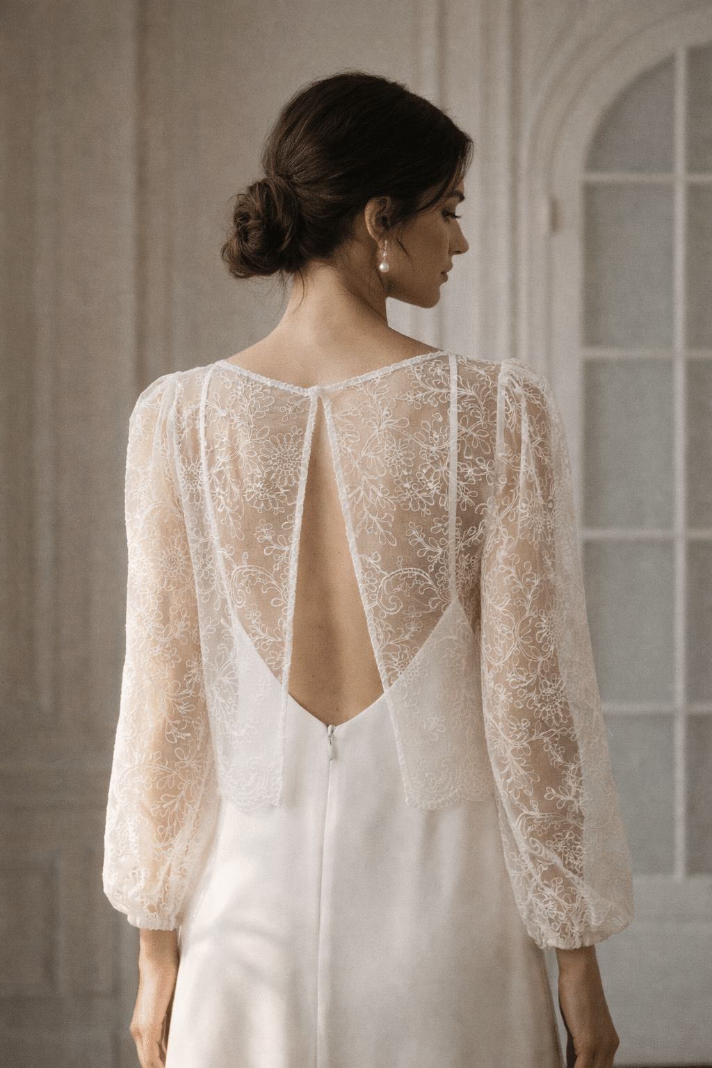 Découvrez le top Léo, une création élégante et intemporelle de la collection civile, signée Anne de Lafforest. Ce top très pur, se porte avec notre robe angèle pour créer un look inoubliable et très élégant.